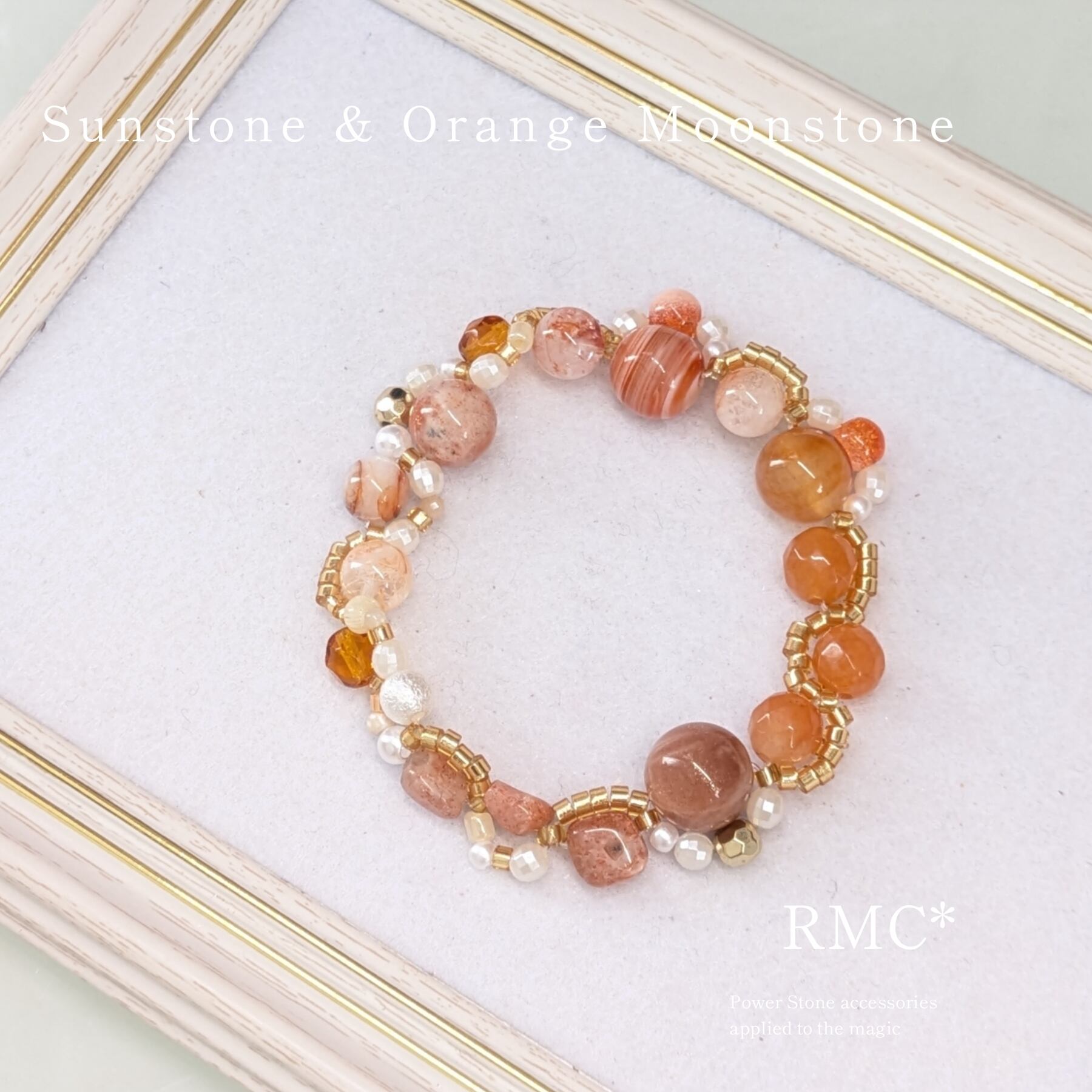 オレンジムーンストーンの夕暮れ 天然石ブレスレット