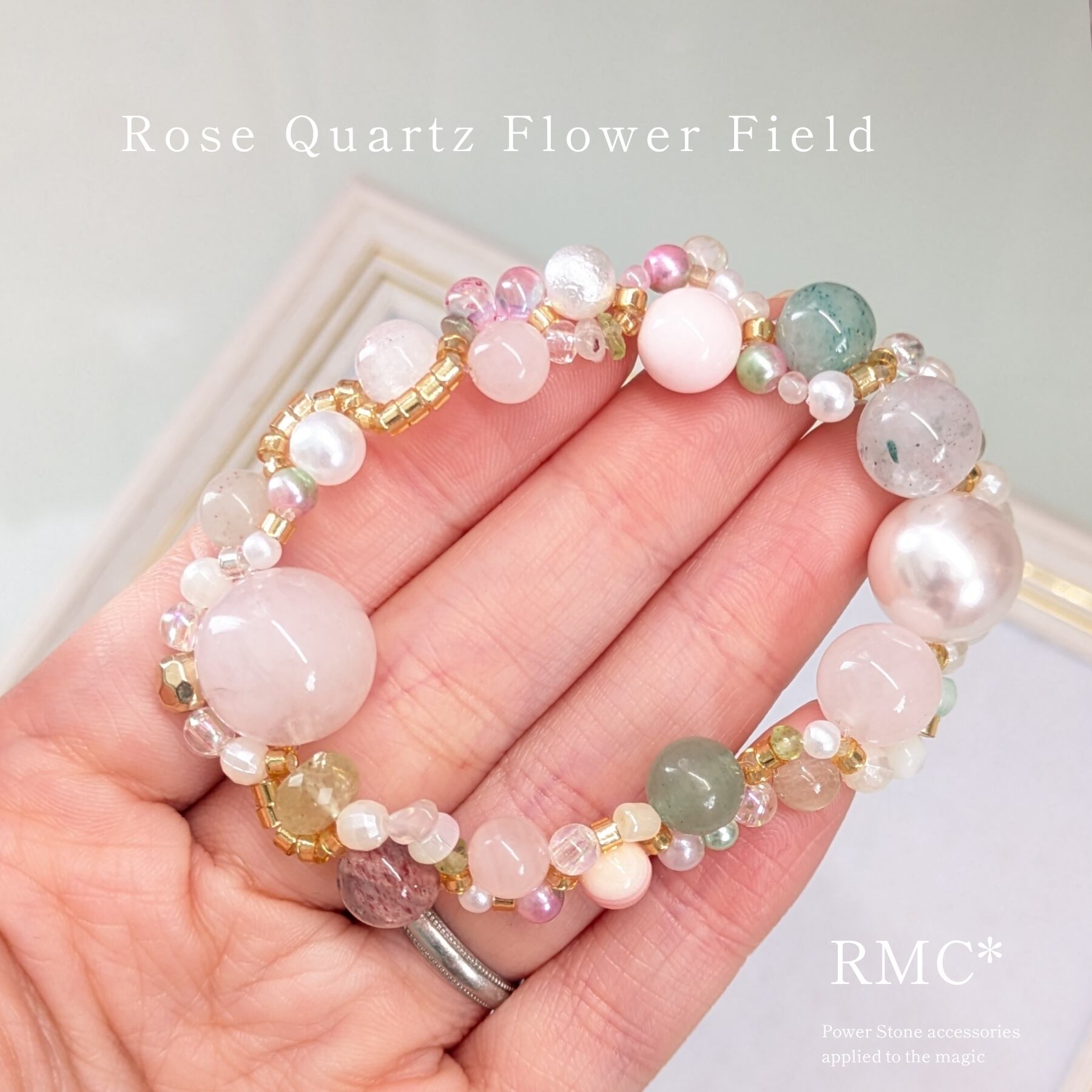 ローズクォーツのお花畑 天然石ブレスレット