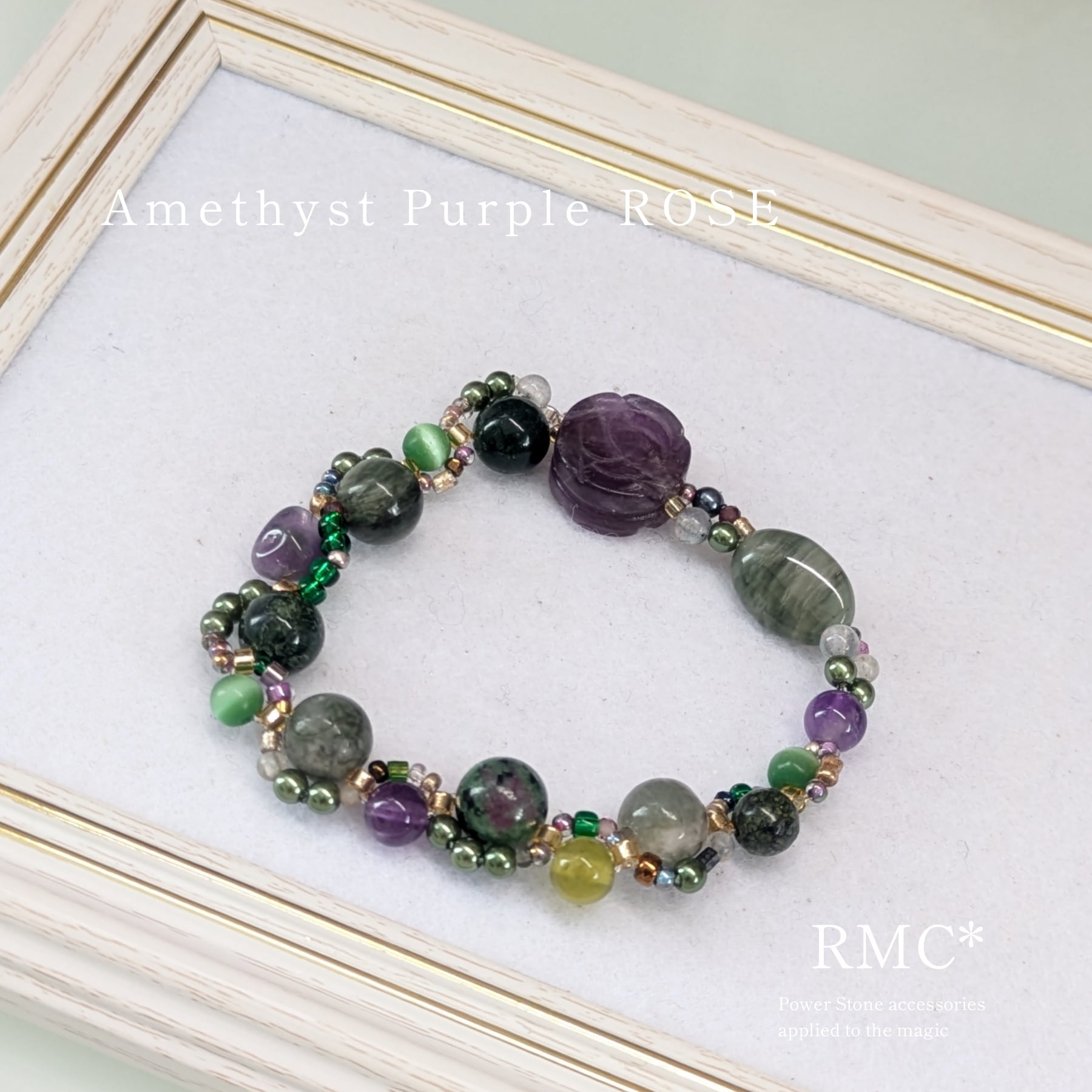 アメジストの薔薇と魔女色 天然石ブレスレット