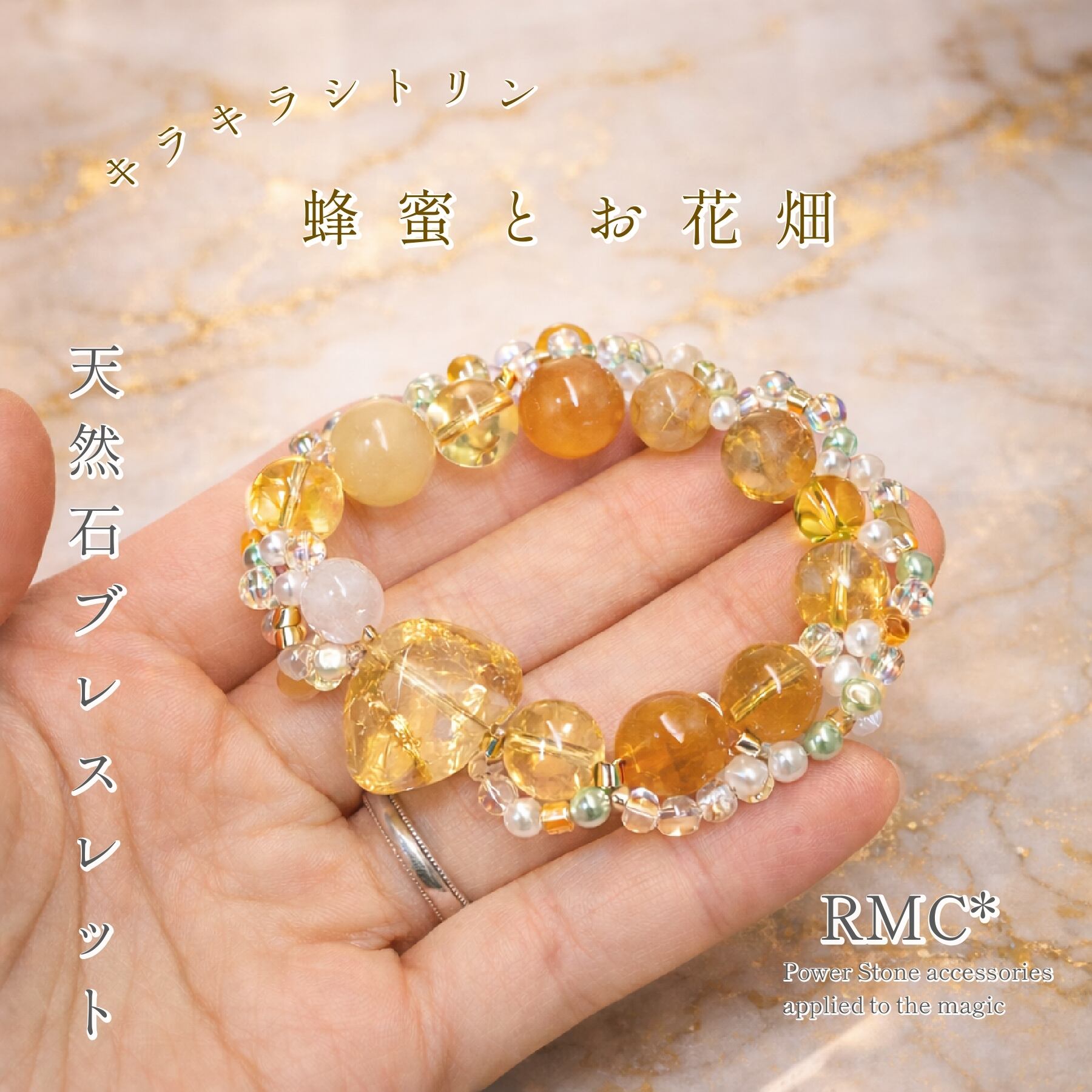 キラキラシトリンはちみつとお花畑 天然石ブレスレット