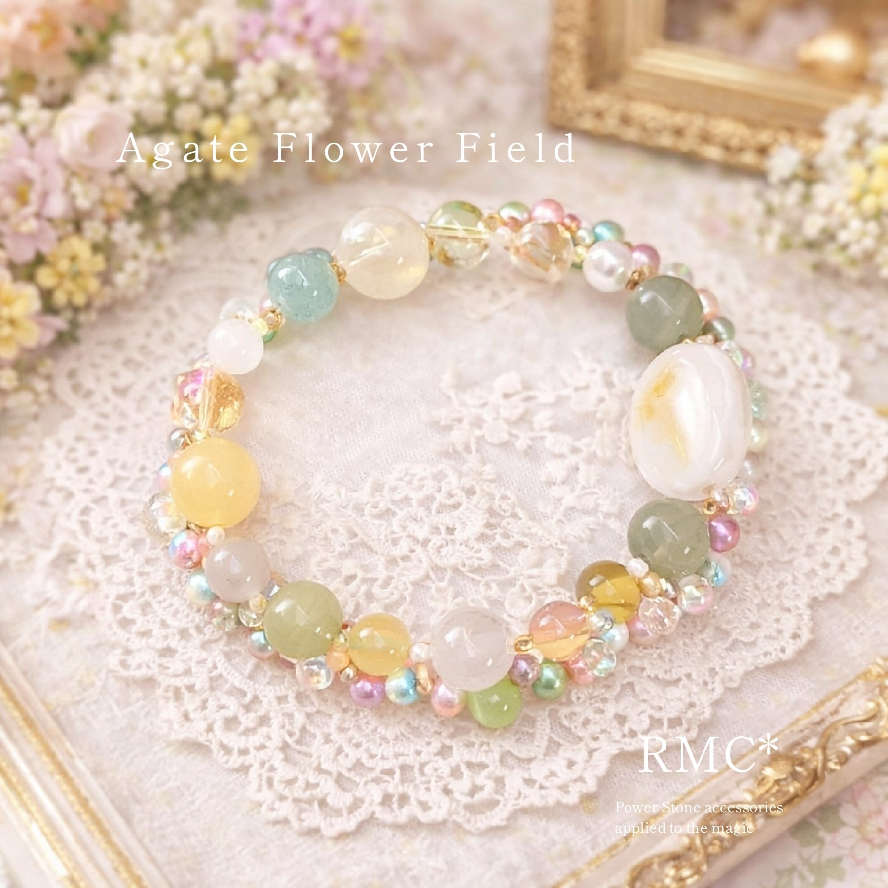 瑪瑙とカラフルお花畑 天然石ブレスレット