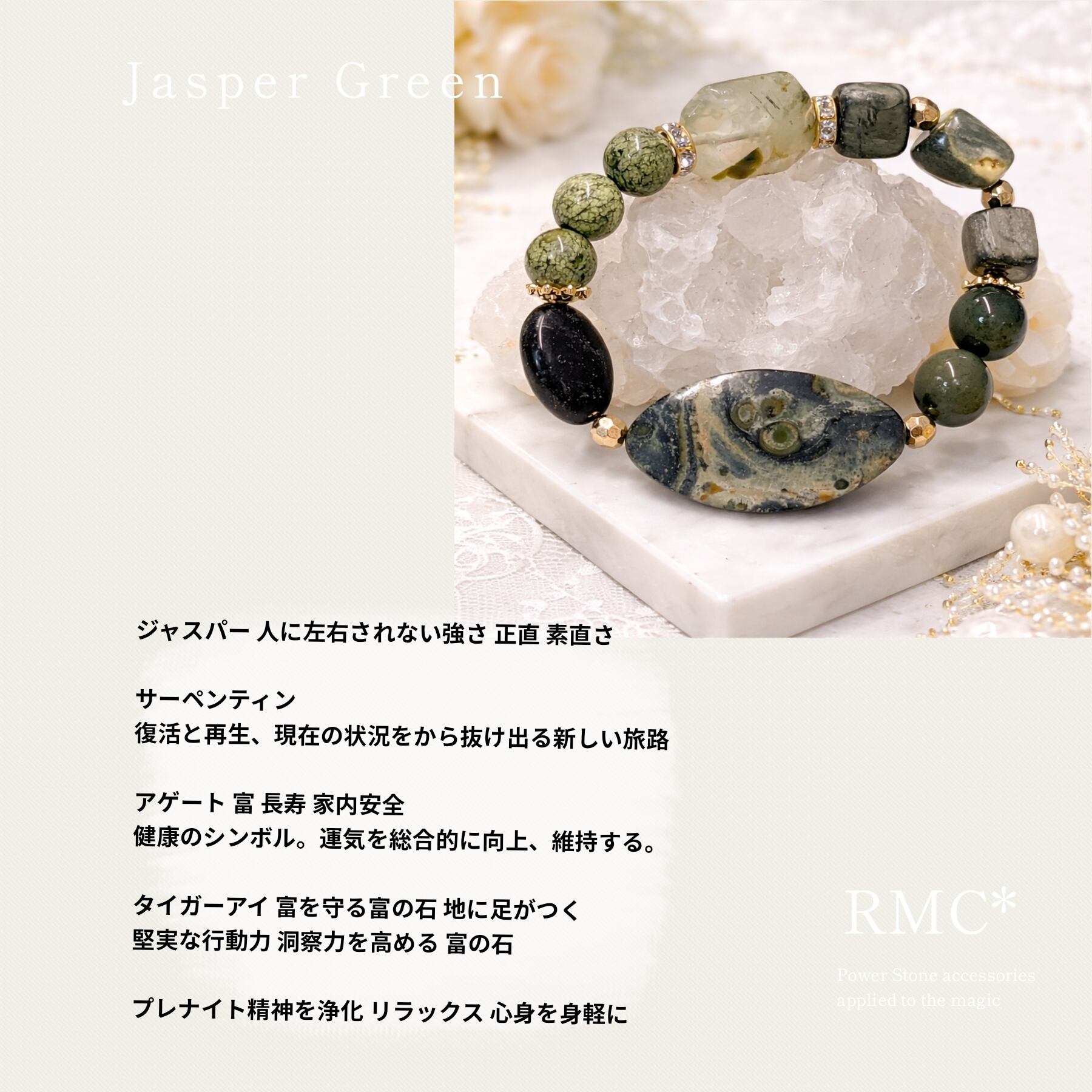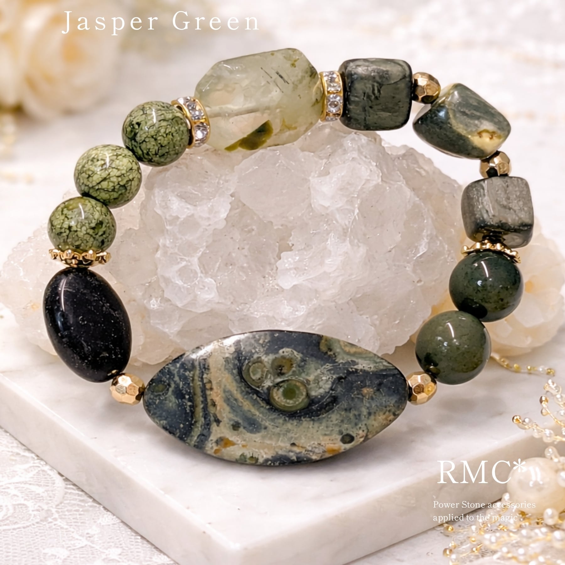 ジャスパー 魔法の緑色 天然石ブレスレット