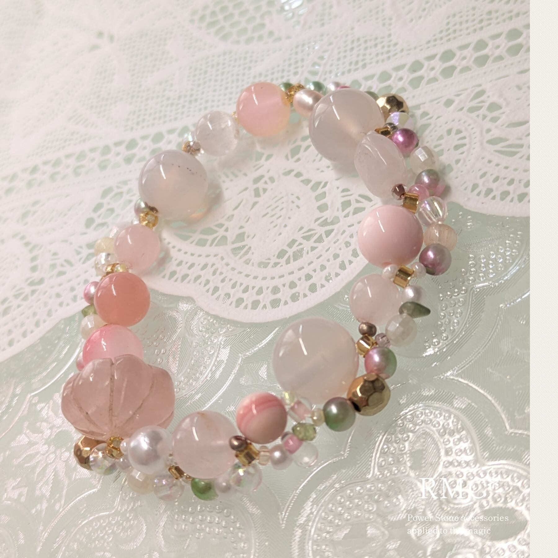 満開桜色 天然石ブレスレット
