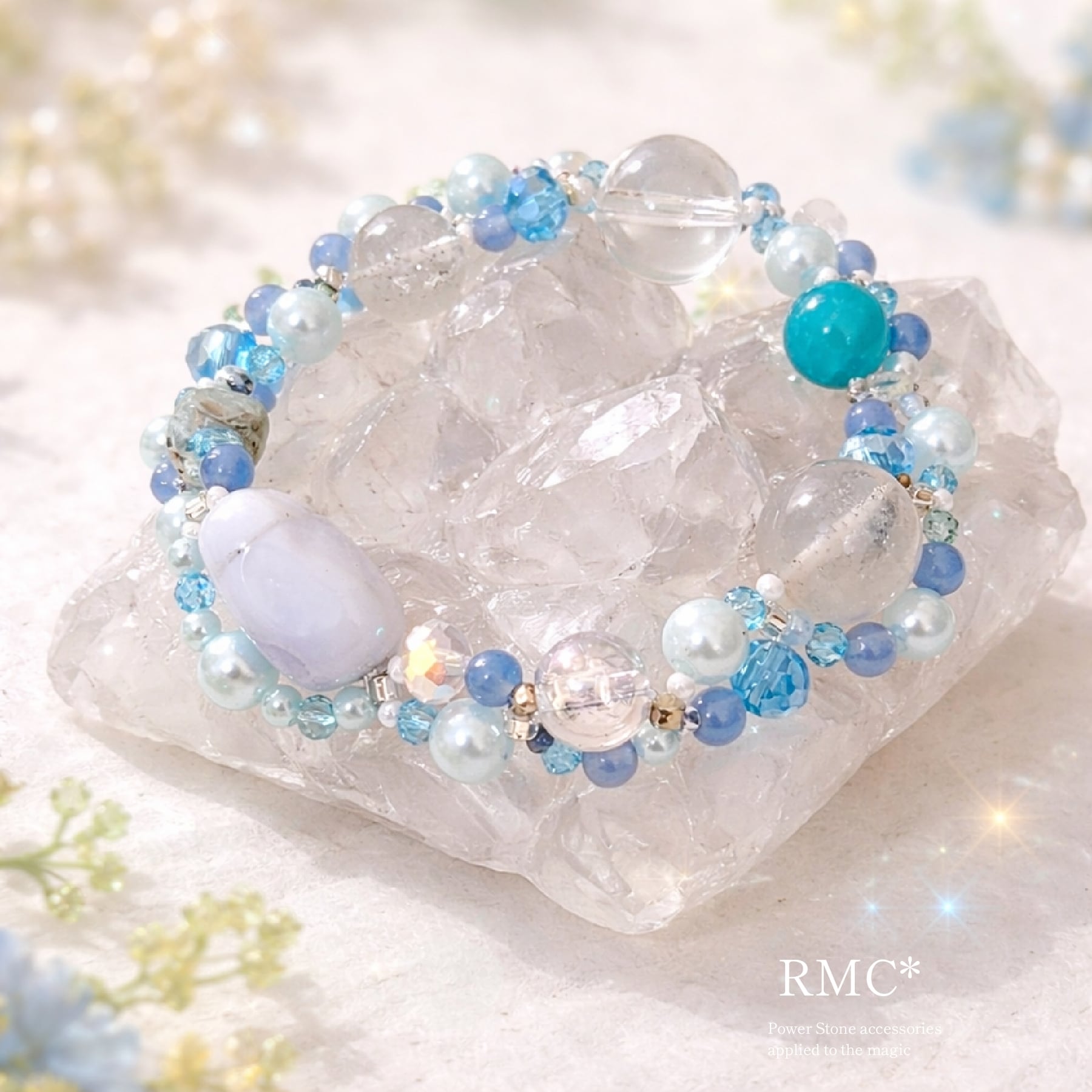 ブルーレースアゲートの青空色 天然石ブレスレット