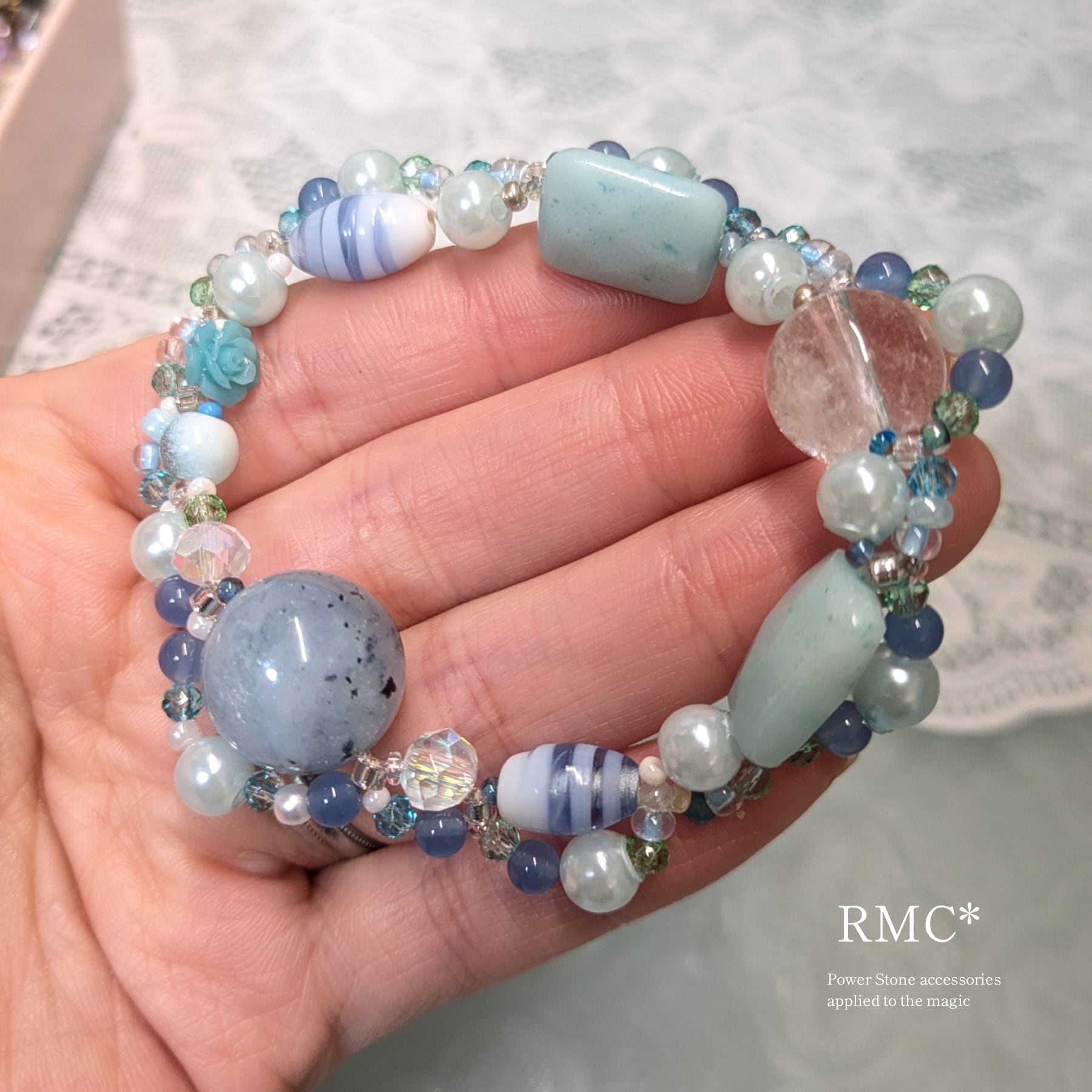 アクアマリン BLUE ROSE 編みデザイン天然石ブレスレット