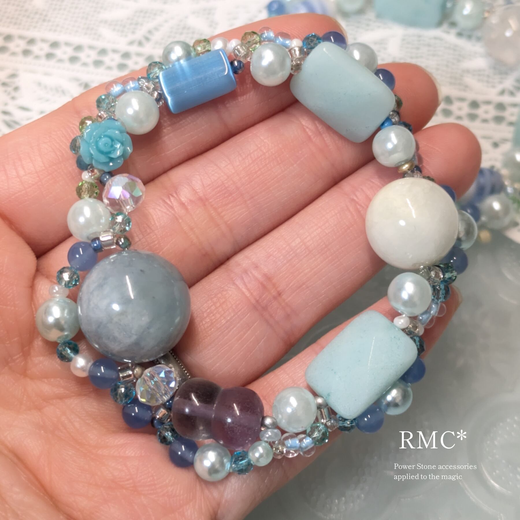 アクアマリン BLUE ROSE 編みデザイン天然石ブレスレット