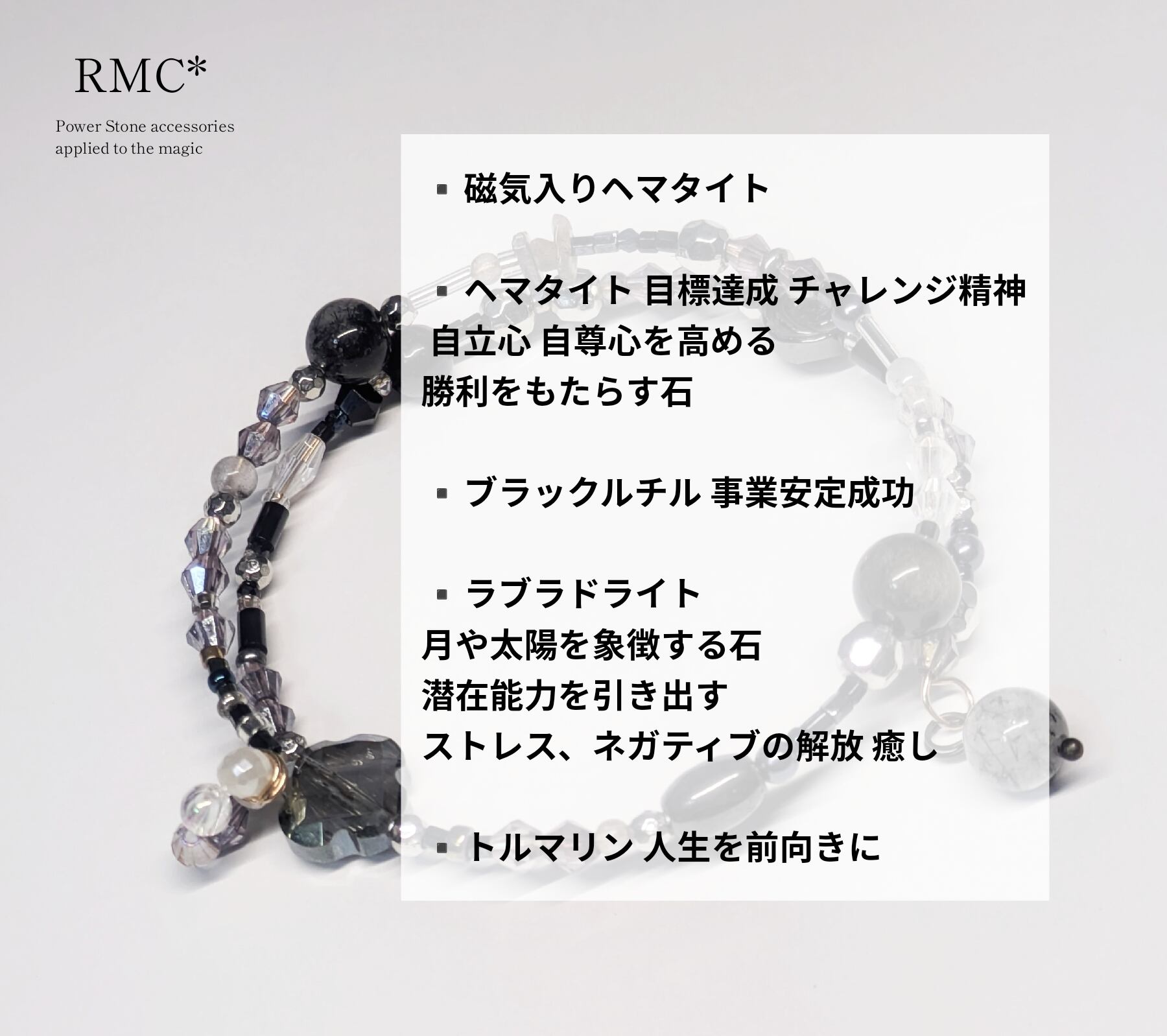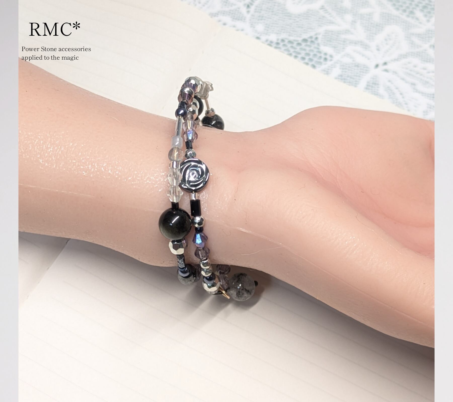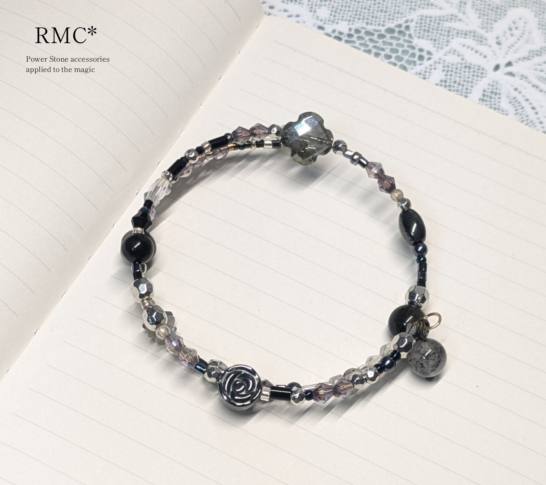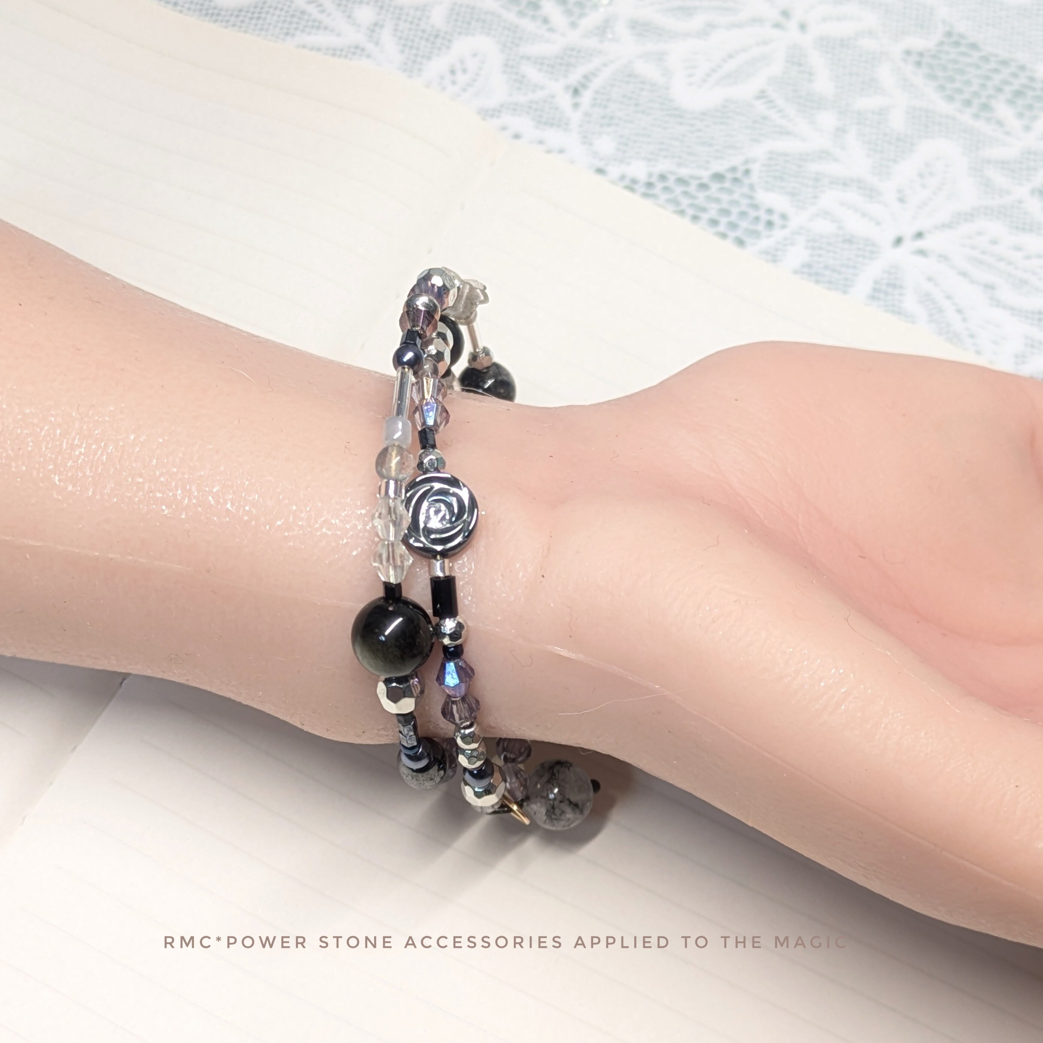 ヘマタイトの黒薔薇。3way天然石アクセサリー