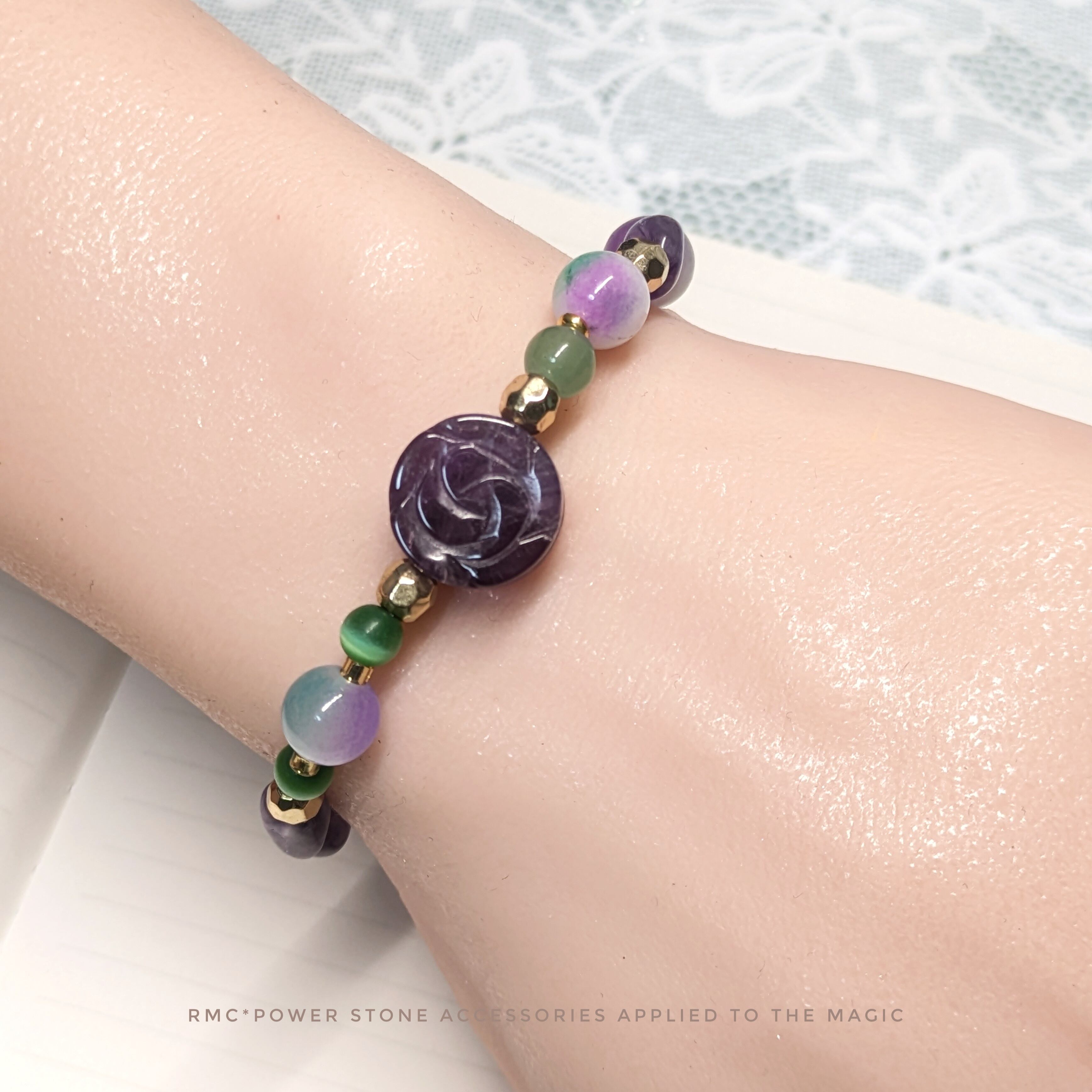 アメジスト紫薔薇 1連天然石ブレスレット