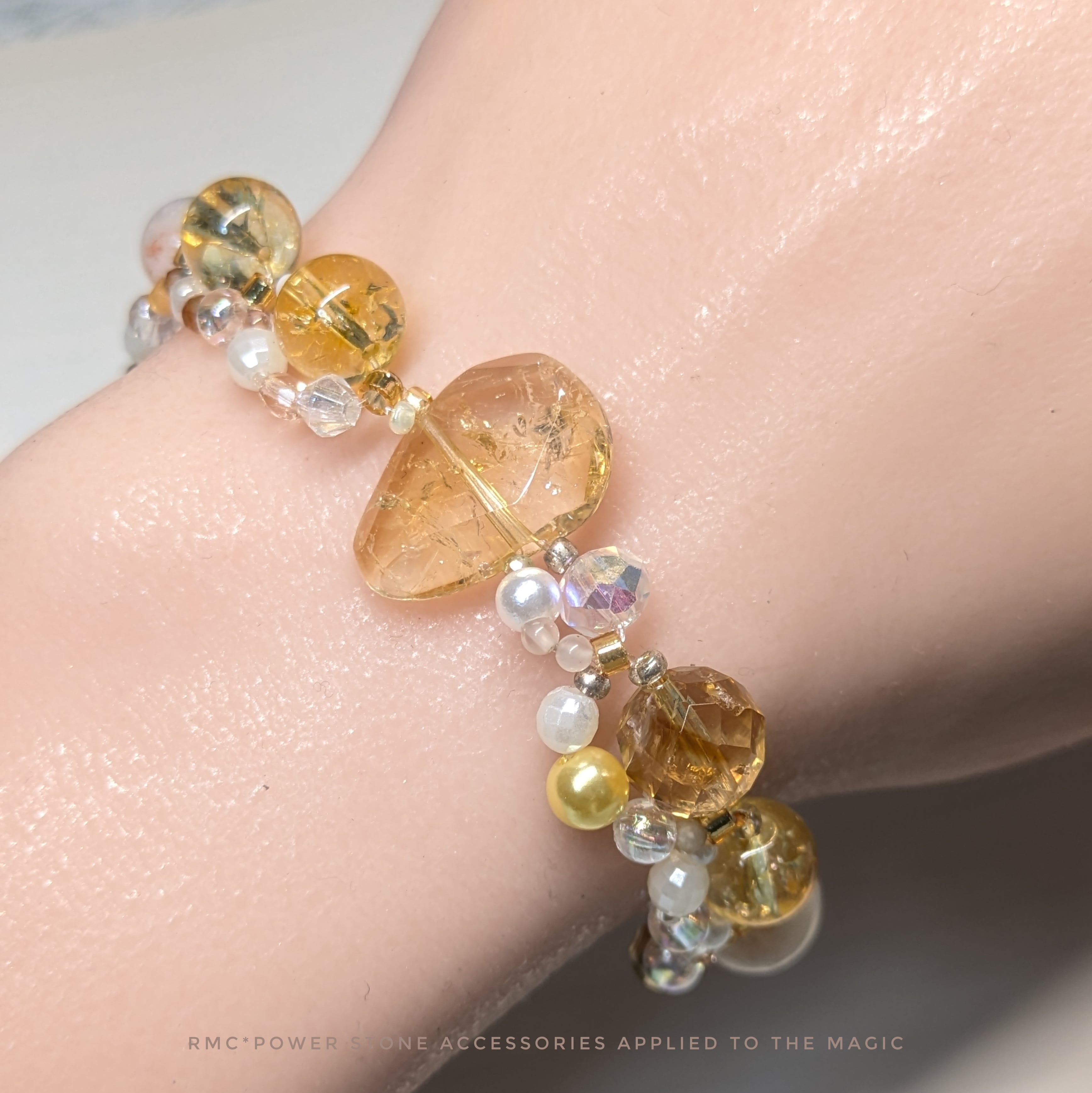 キラキラはちみつシトリン 編みデザイン天然石ブレスレット