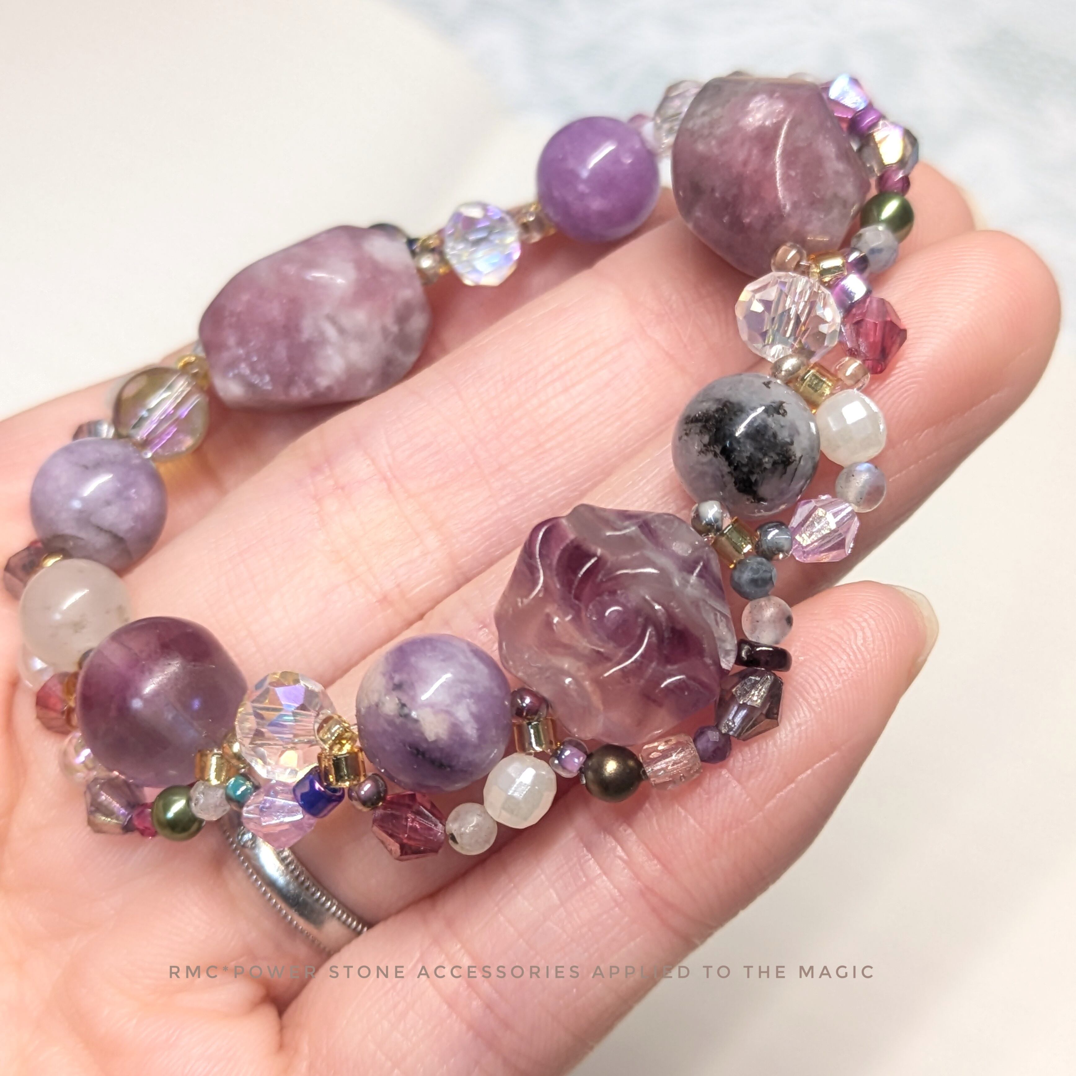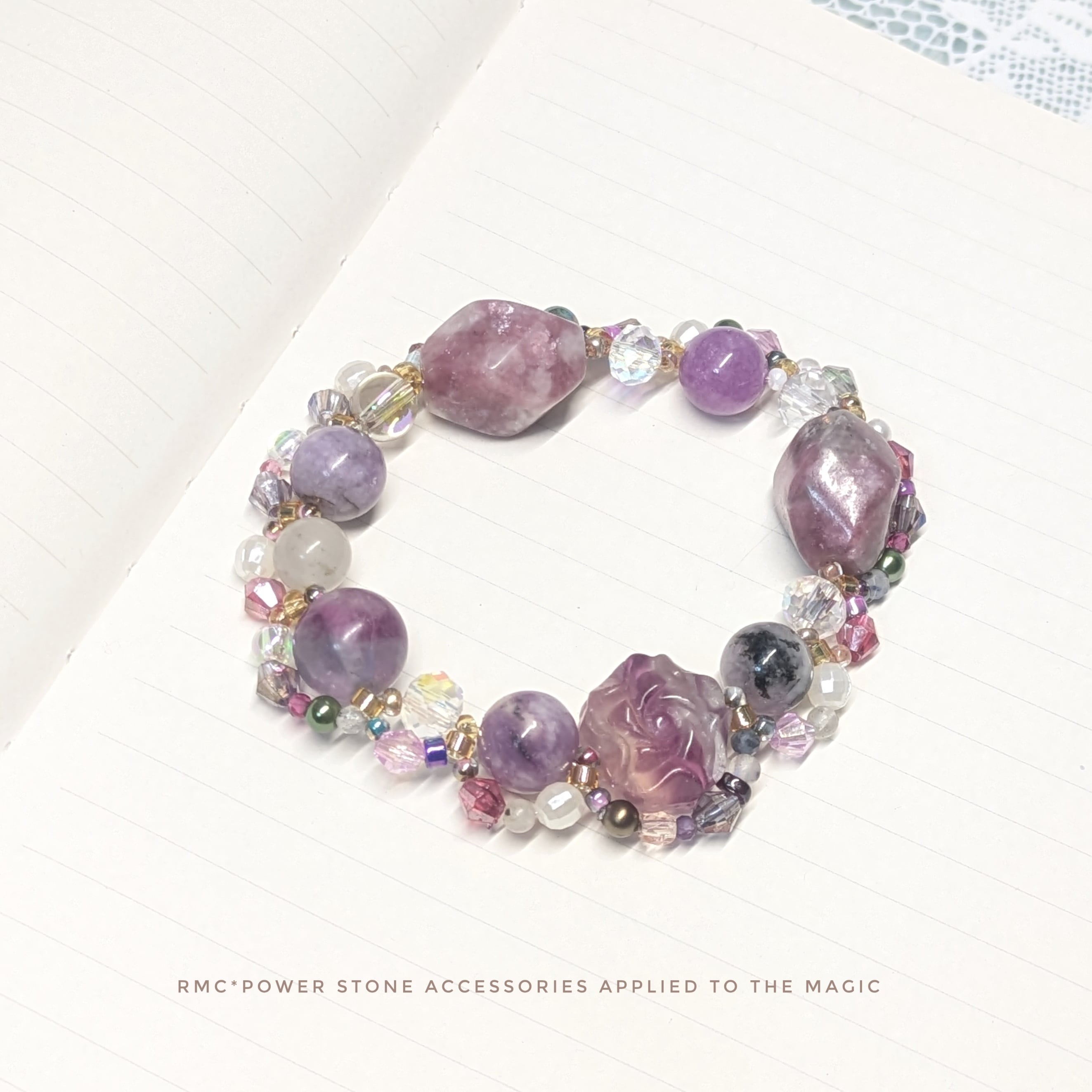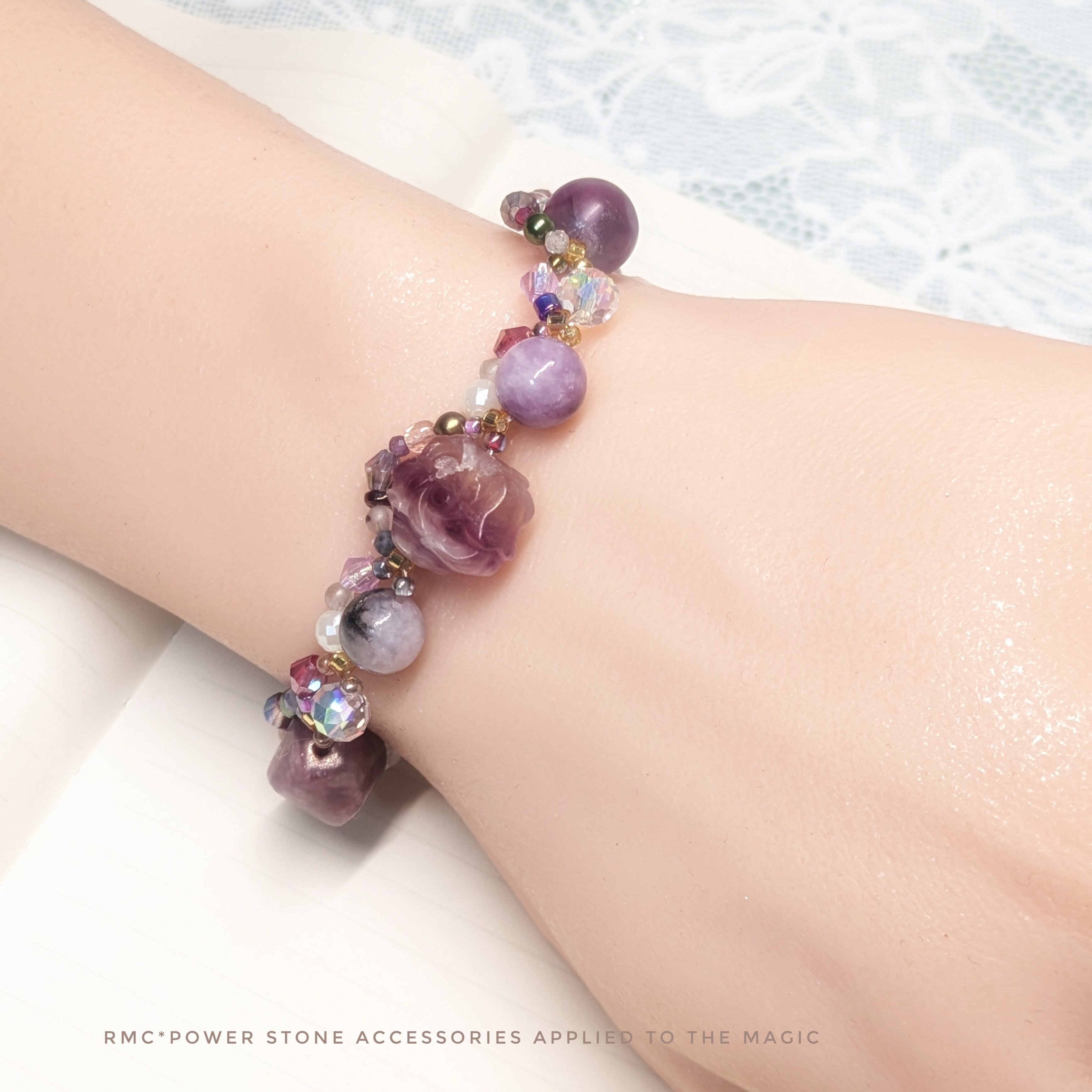 フローライト紫薔薇 魔法色 編みデザイン天然石ブレスレット