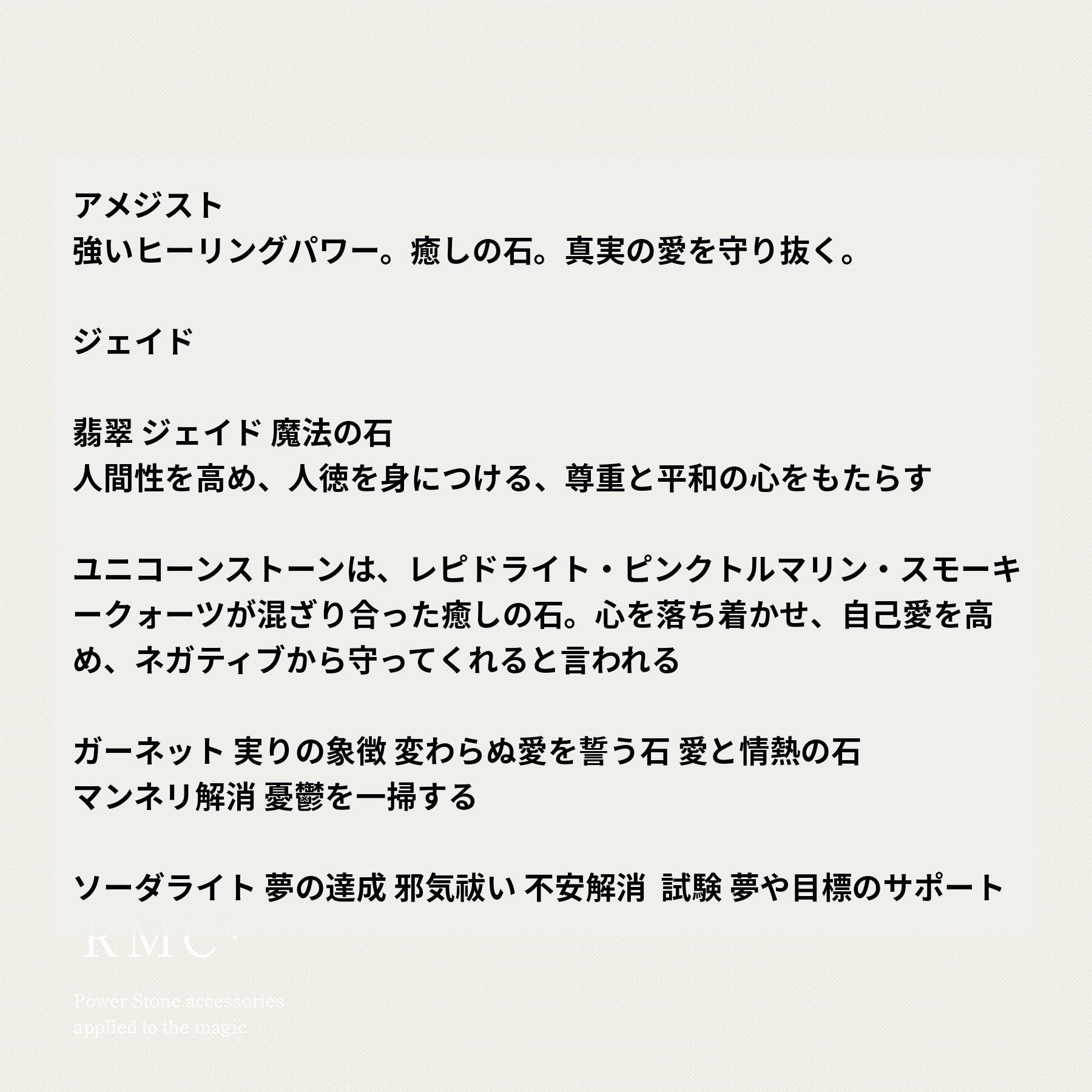 使用している天然石やデザインの詳細は、画像にてご確認いただけます。