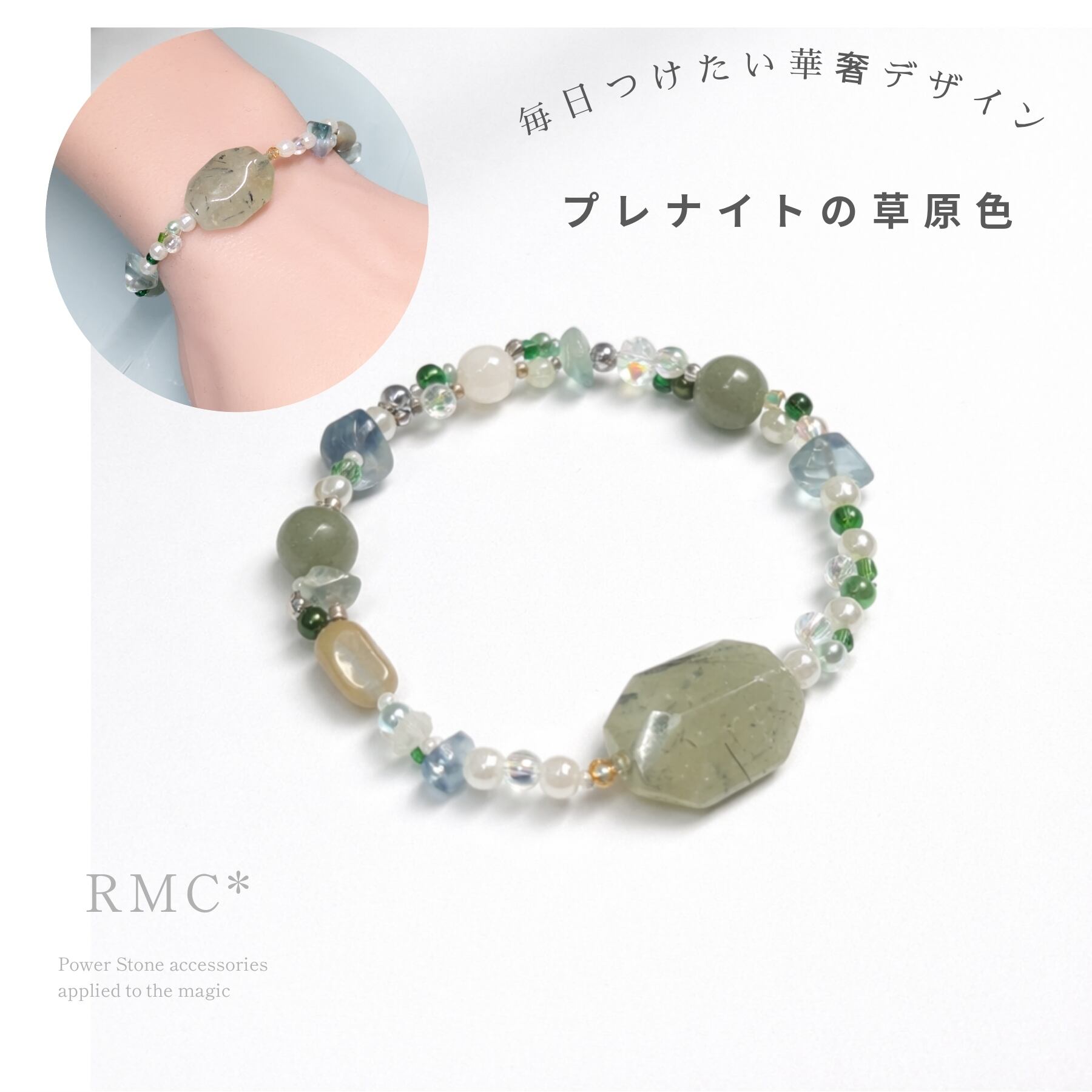 #プレナイト #天然石ブレスレット #ハンドメイド #アクセサリー #パワーストーン #美しいデザイン #草原色 #魅力