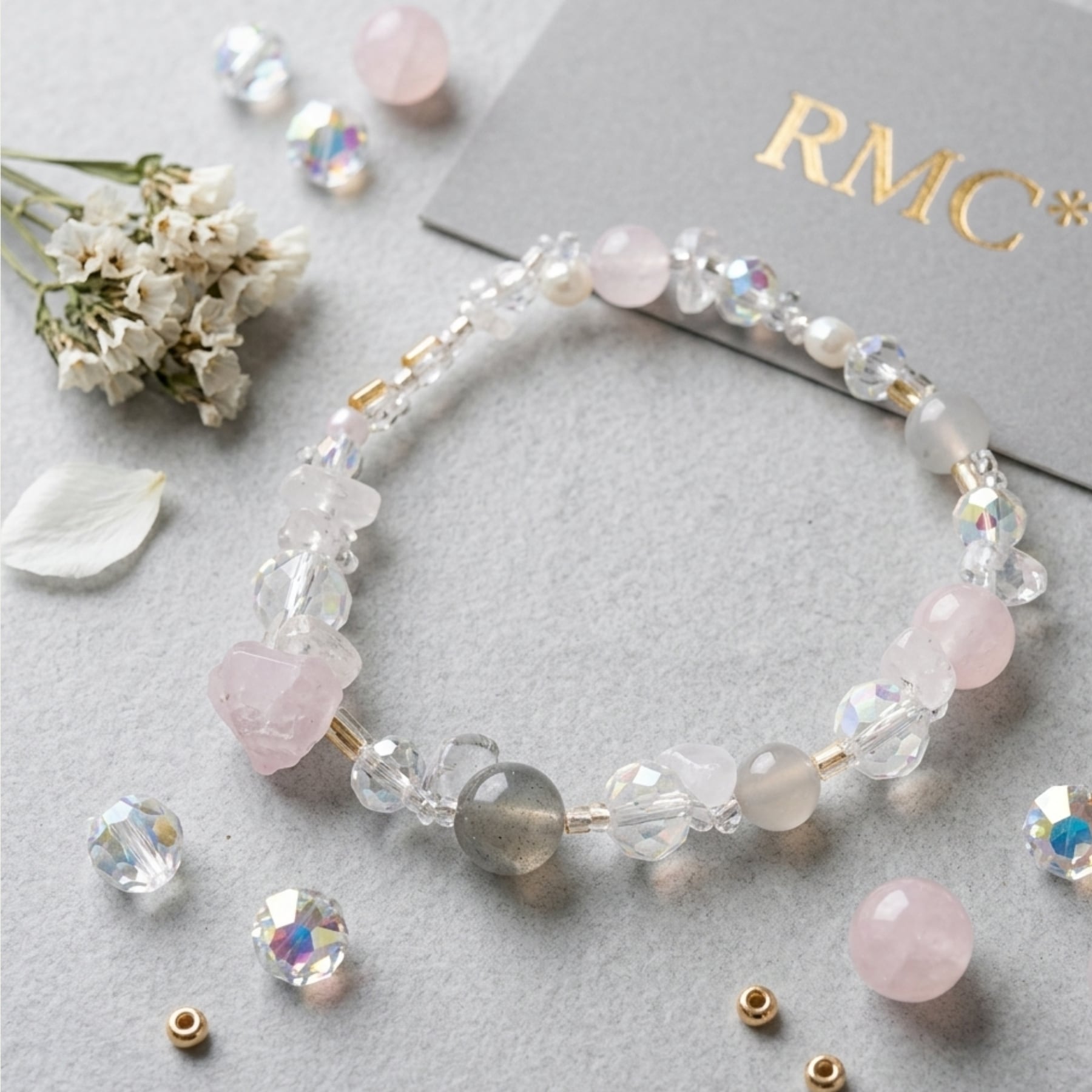 このアメジストと天使のお花畑新デザイン天然石ブレスレットは、柔らかい紫色のアメジストと可愛らしい天使のモチーフが特徴です。アメジストは、心の平和と精神の安定を象徴するとされ、このブレスレットは手元を一層華やかに演出し、日常のコーディネートにも自然に溶け込むことができます。お写真は15〜16cmの作品ですが、最大18.5cmまでサイズ調整が可能ですので、お好みに合わせてお使いいただけます。