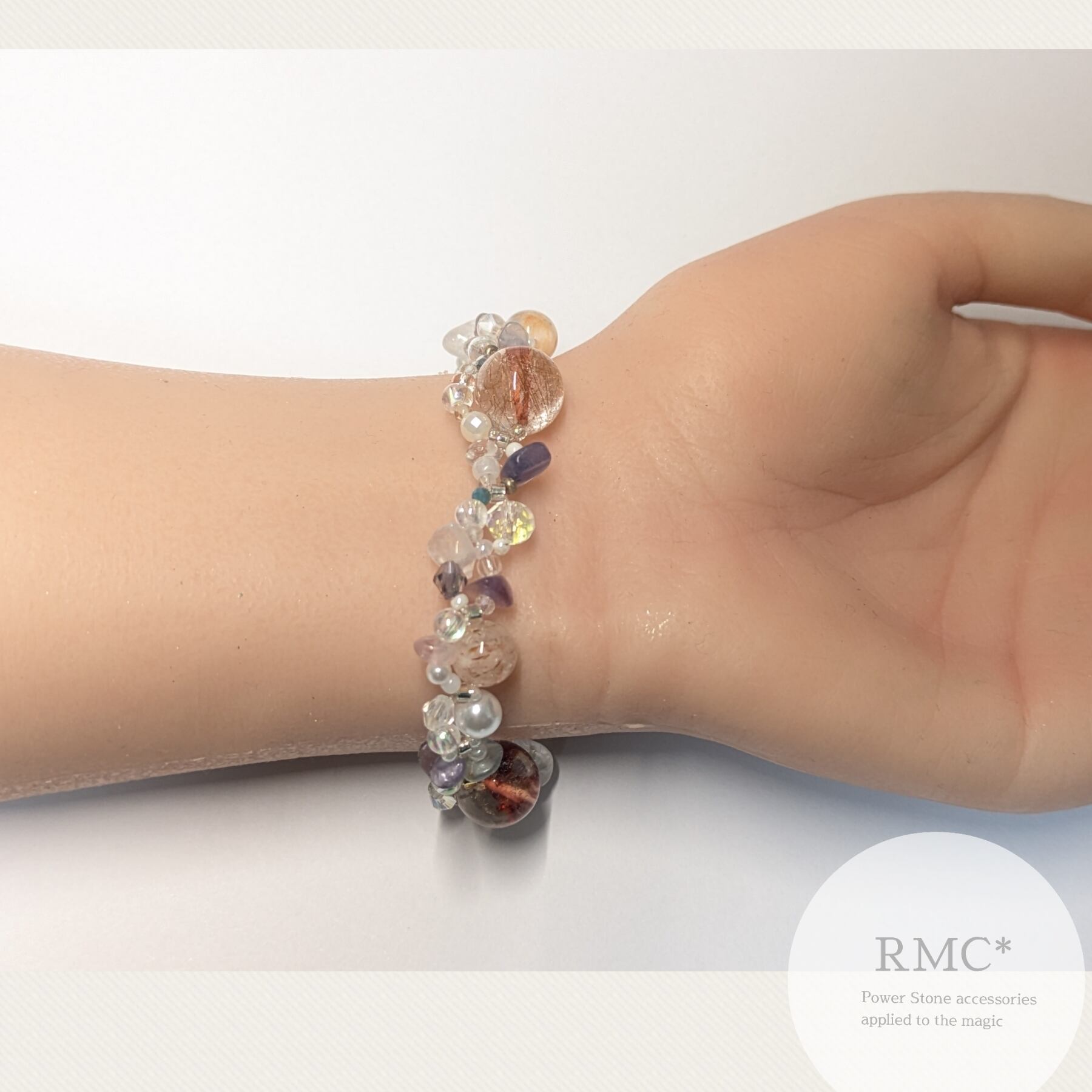 天然石とビーズのデザインブレスレットです。