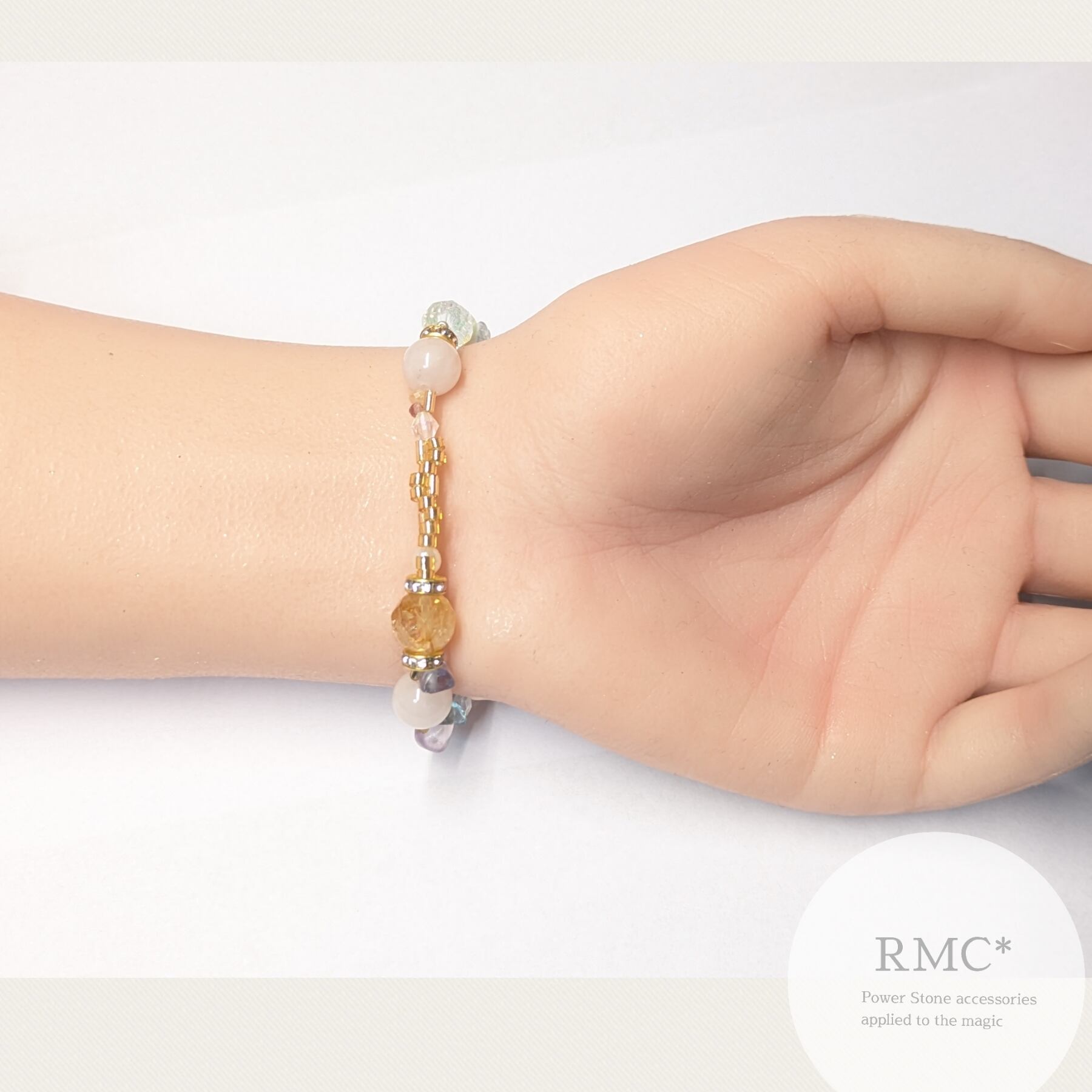 天然石とビーズのデザインブレスレットです。