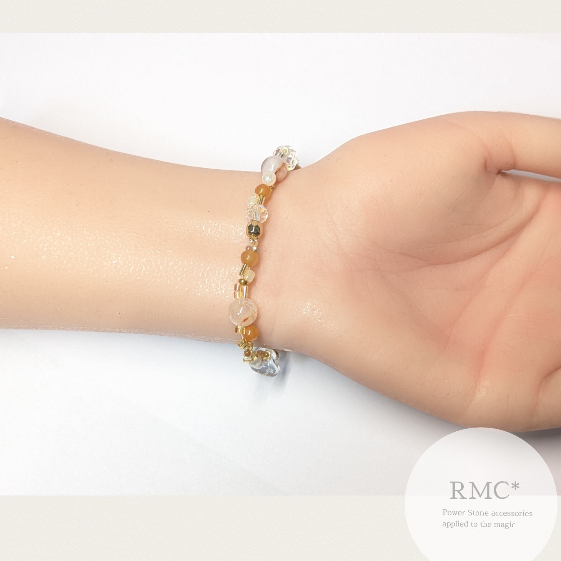 天然石とビーズのデザインブレスレットです。