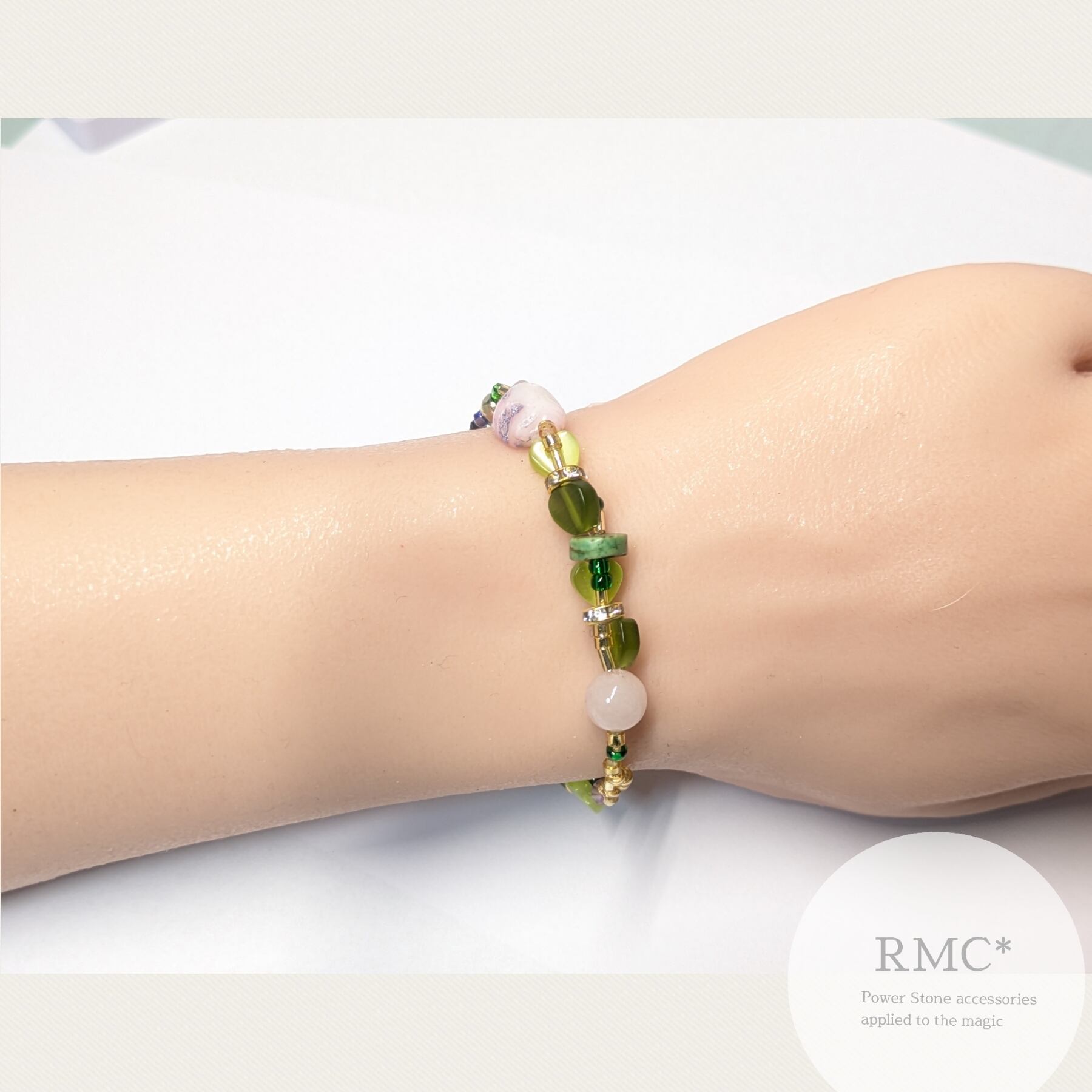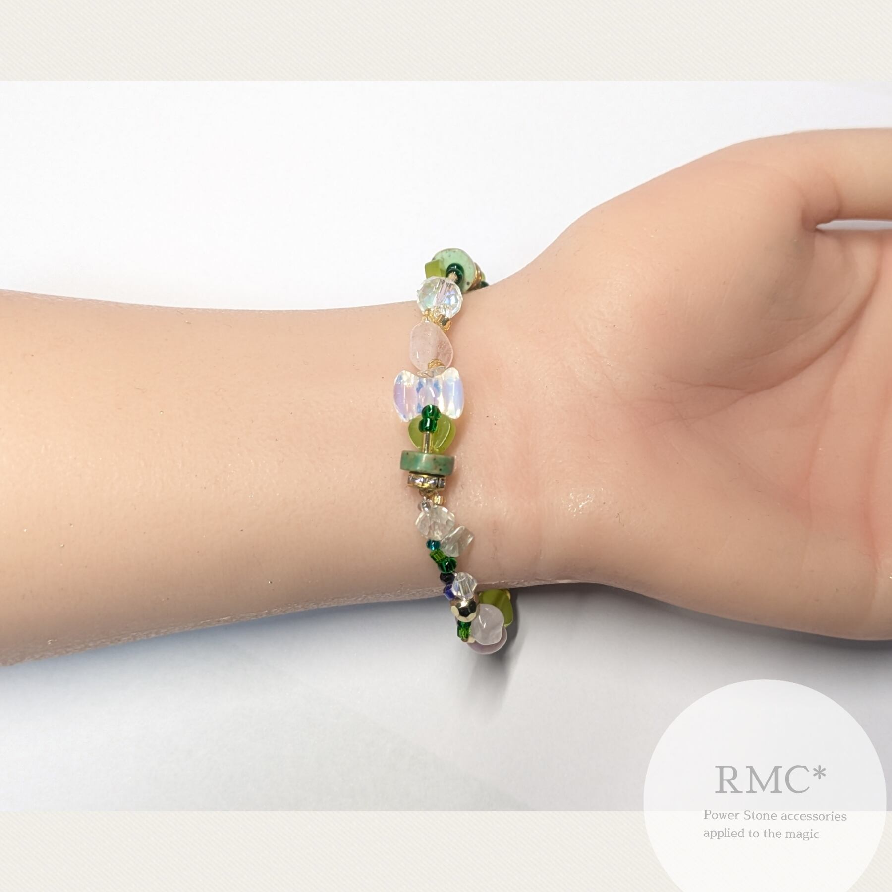 ローズクォーツとクローバー 新デザイン天然石ブレスレット