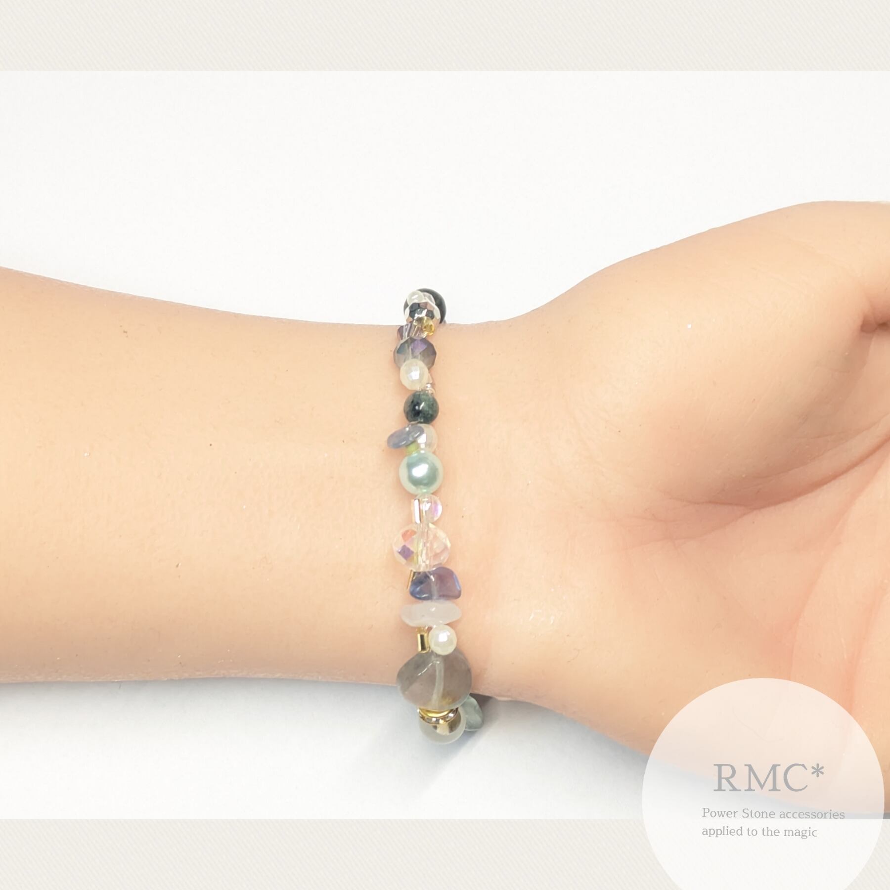 天然石とビーズのデザインブレスレットです。