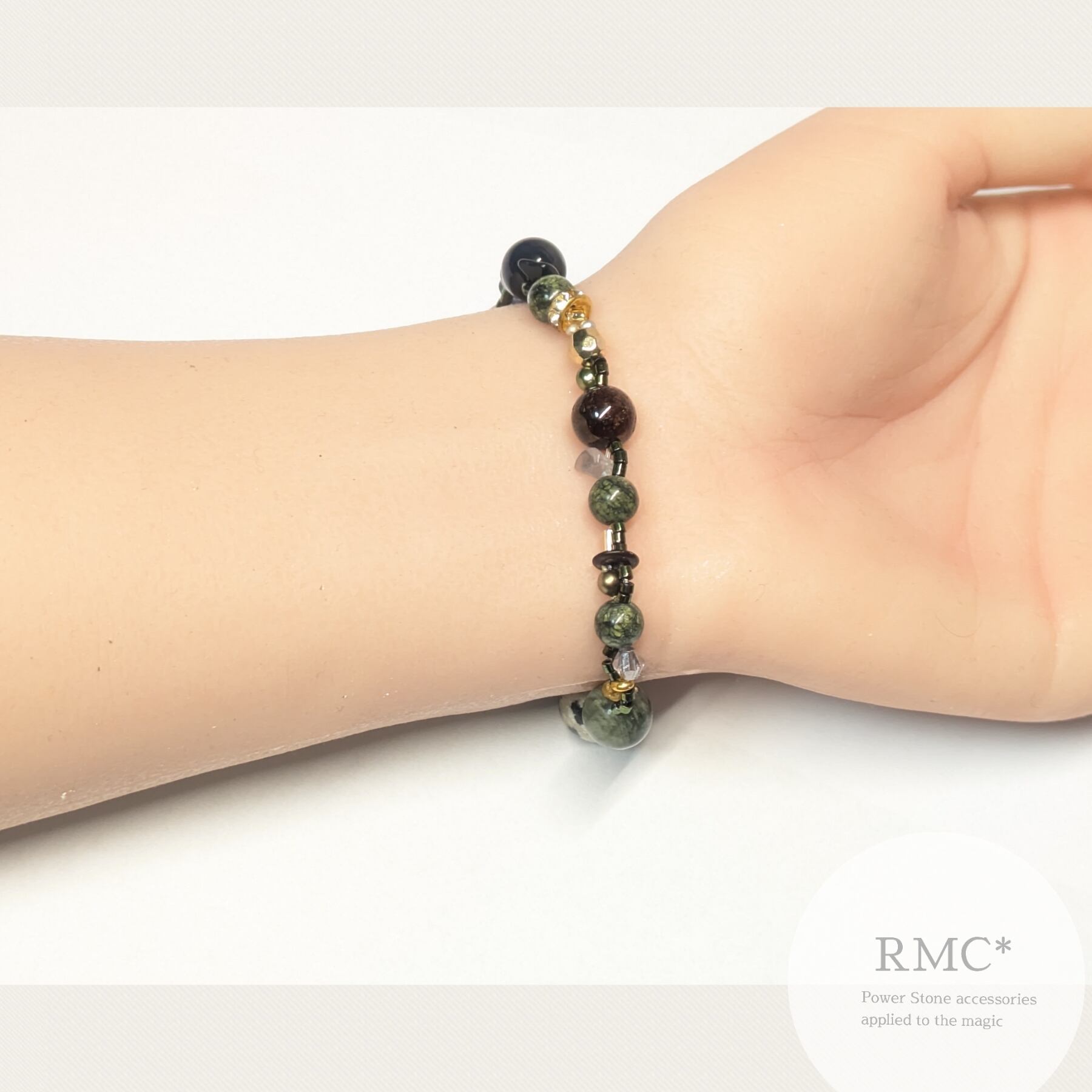 天然石とビーズのデザインブレスレットです。