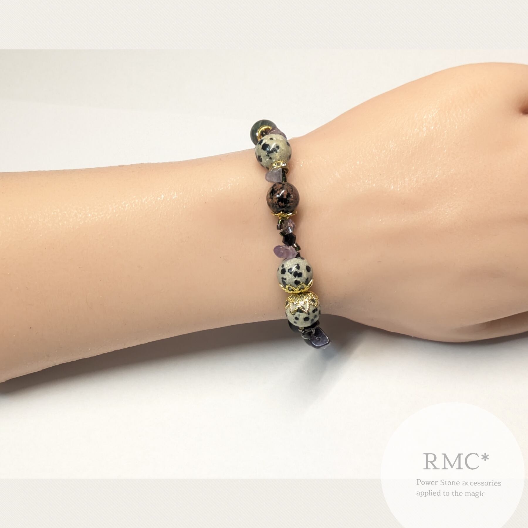 ダルメシアンジャスパー ゴシック 秘密の蝶々 新デザイン天然石ブレスレット