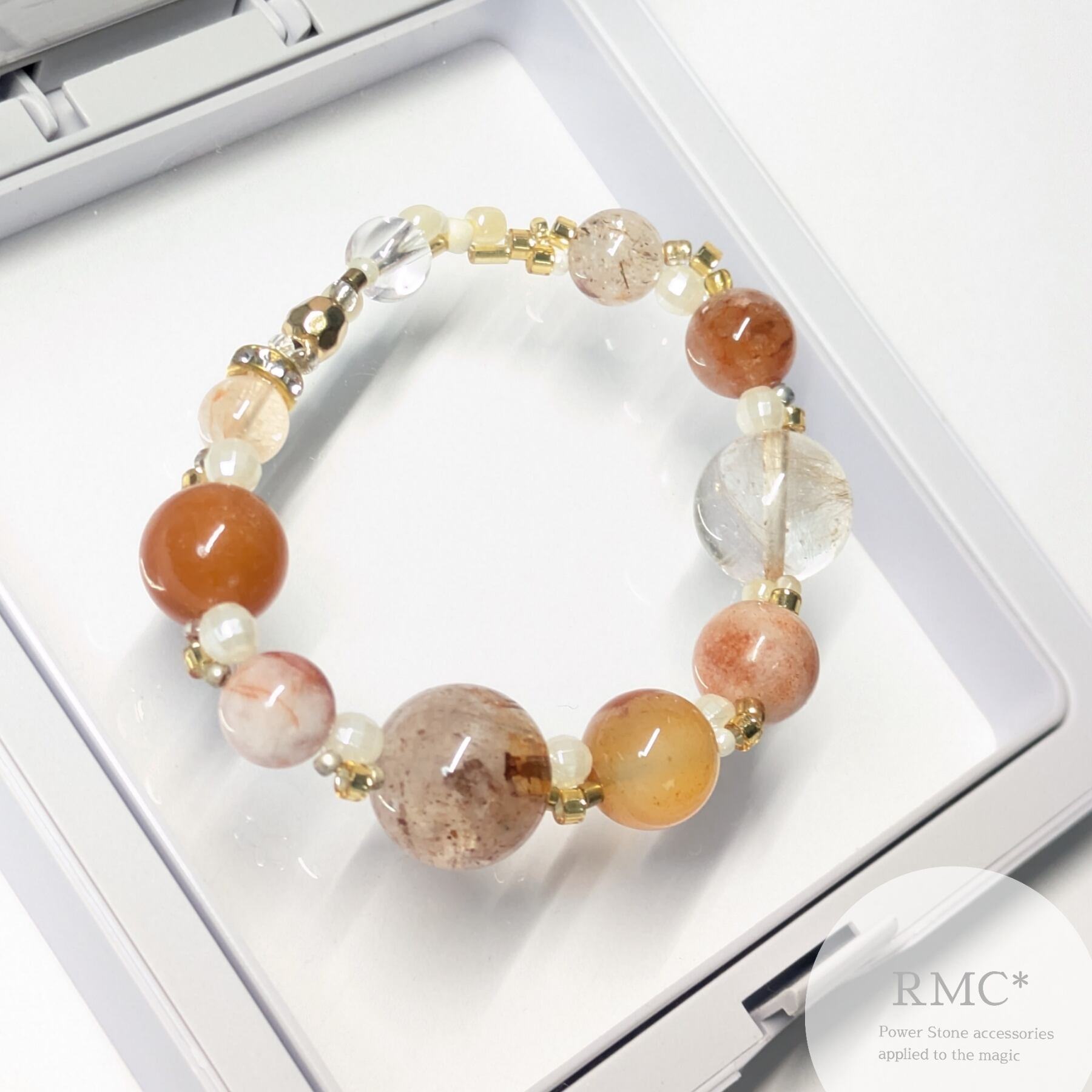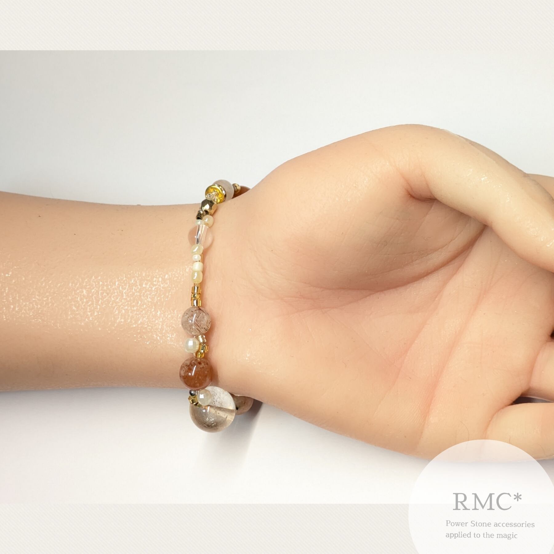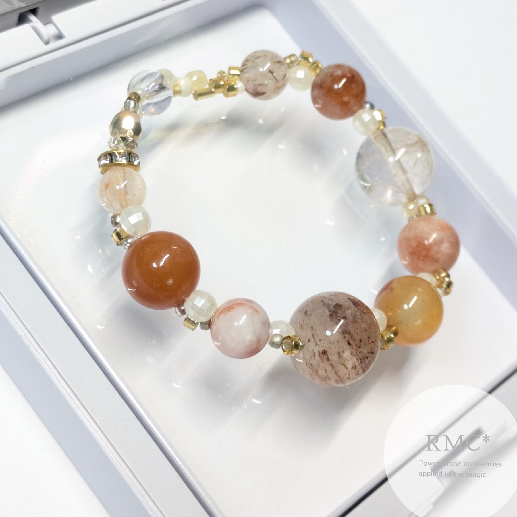 ライモナイトインクォーツ サンストーン 新デザイン天然石ブレスレット