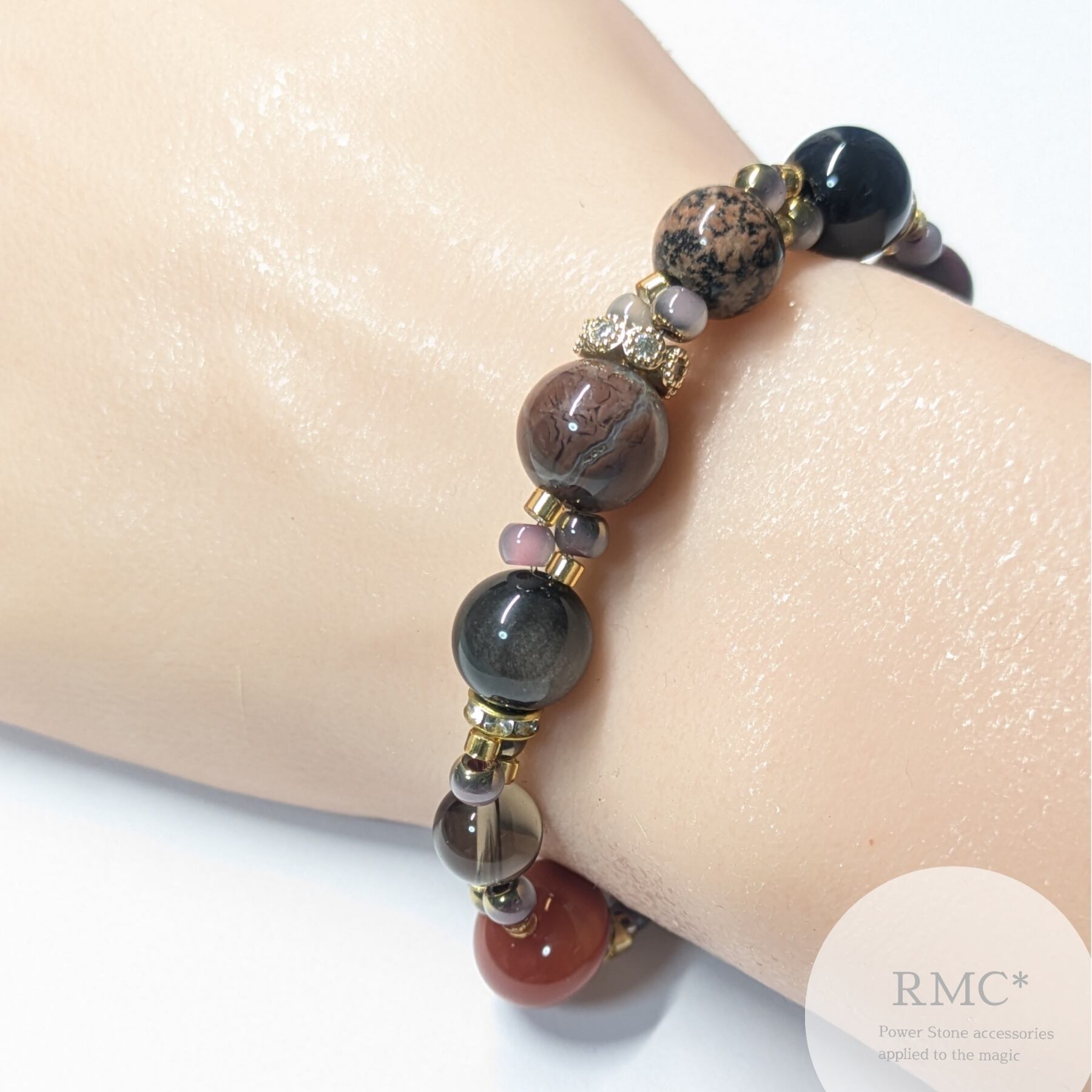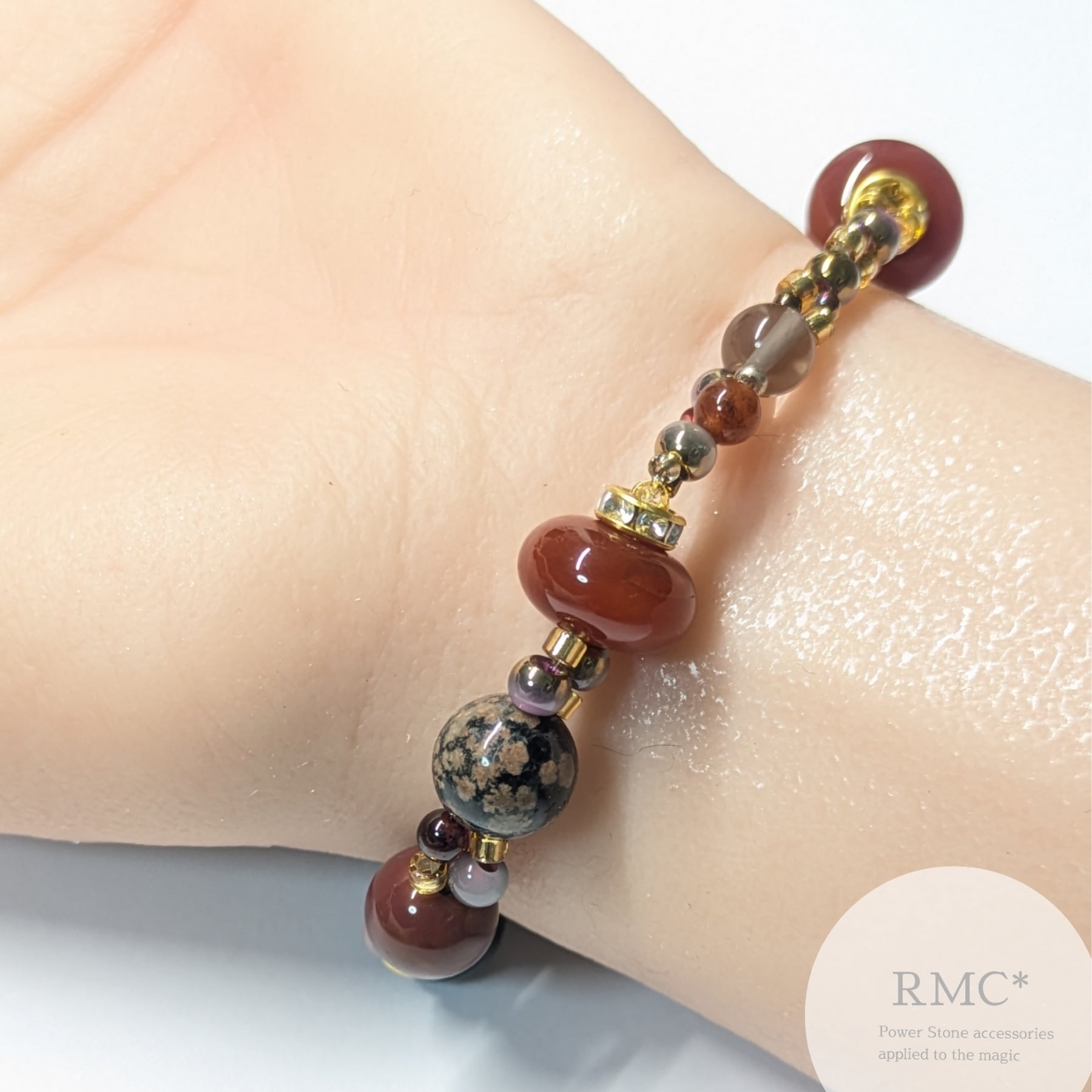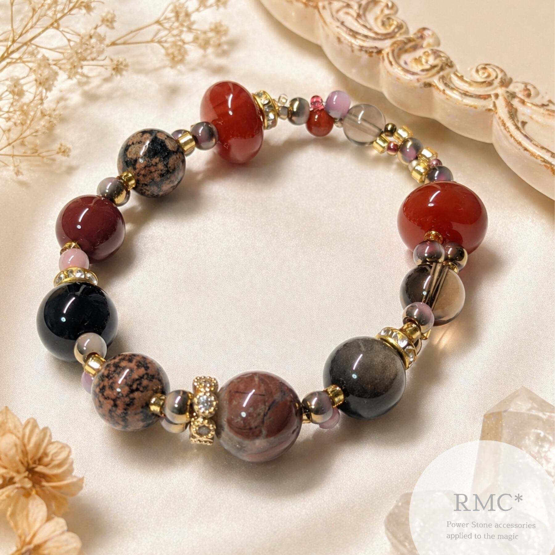 鮮やかな赤色のジャスパーと瑪瑙が、真っ赤なルージュを思わせる大胆で洗練されたデザインに仕上げられたこのブレスレットは、あなたの手元に力強いエネルギーと自信をもたらします!嬉しいご縁をお待ちしております♡